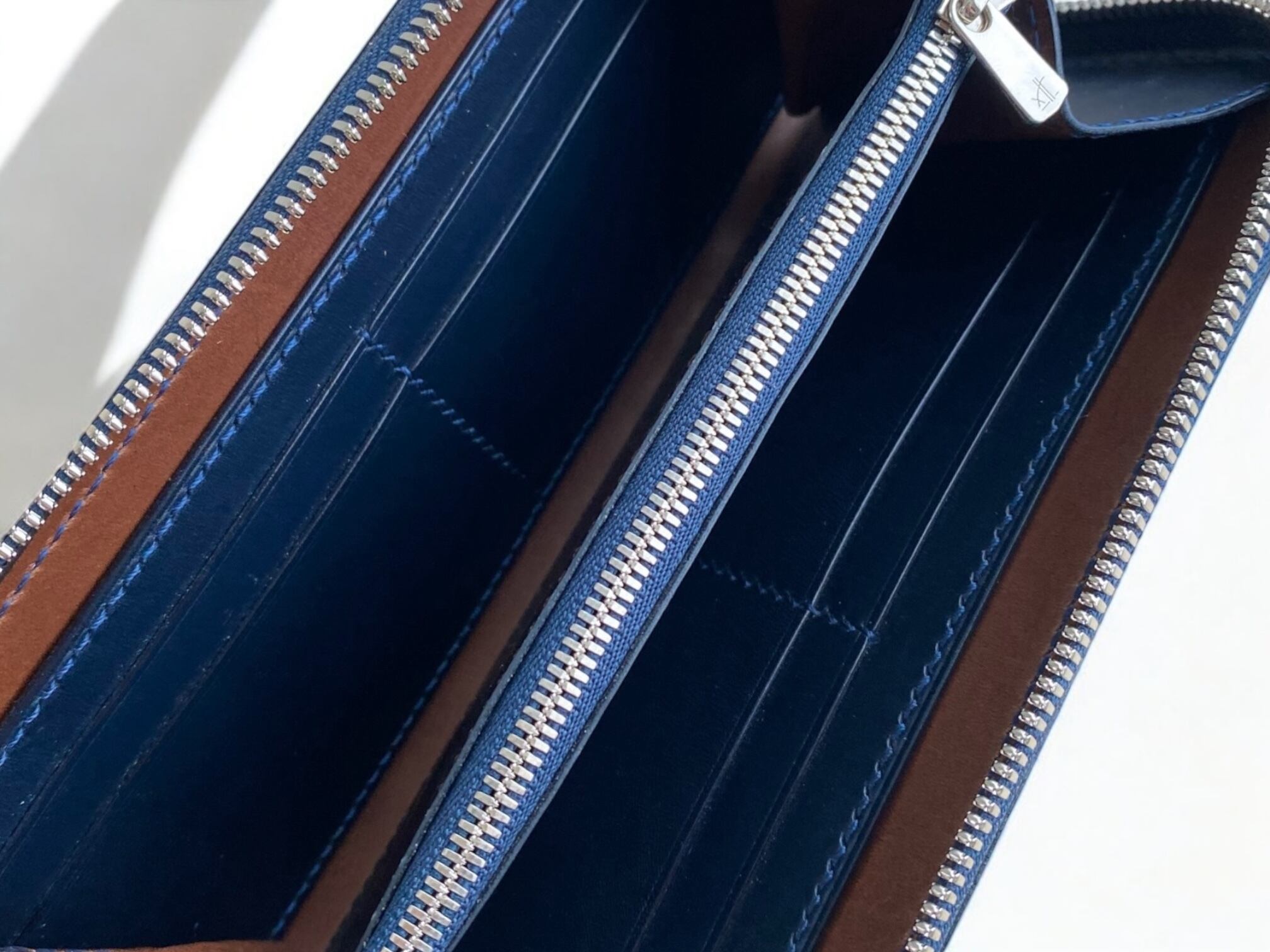 L字型ファスナーのロングウォレット。お財布中が一目でわかりお札、レシートなど綺麗に仕分ける事が可能です。床面を見せないオールレザー仕様で仕上げました。
